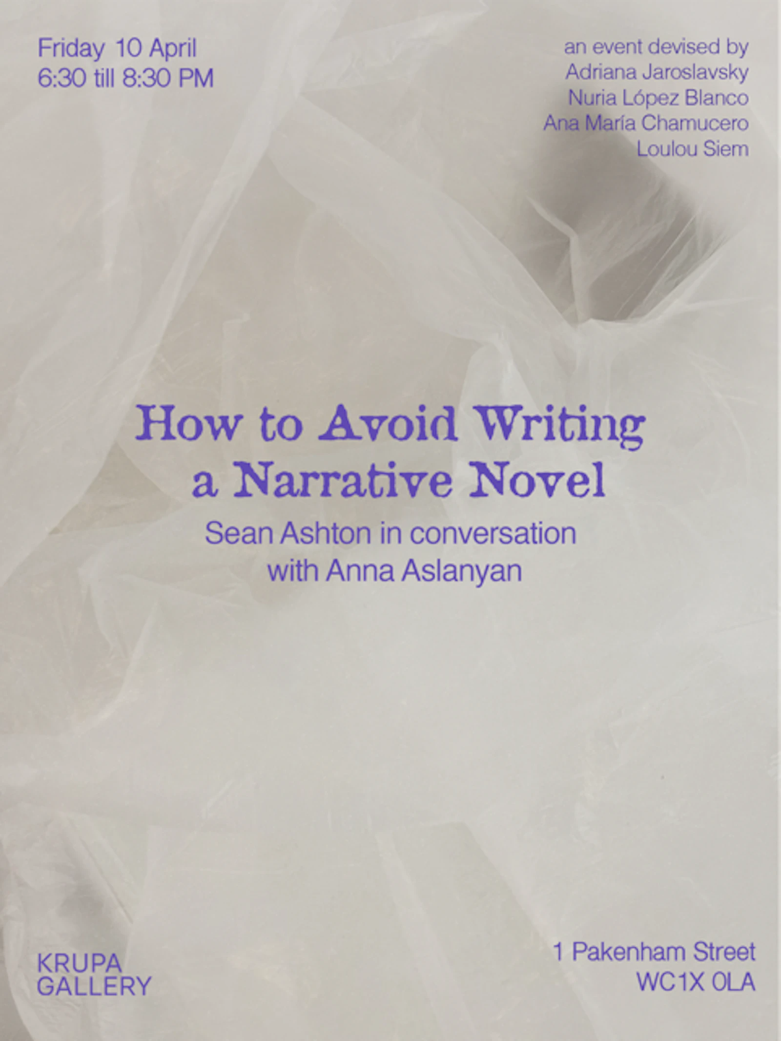 Ashton will be in conversation with writer and translator Anna Aslanyan, author of Dancing on Ropes: Translators and the Balance of History (Profile, 2021) and several articles on literary constraints, including the Oulipo group and Georges Perec. Join us for readings and insights from the artists, whose current show is the first of several projects that will use ‘avoidance’ as a curatorial conceit.