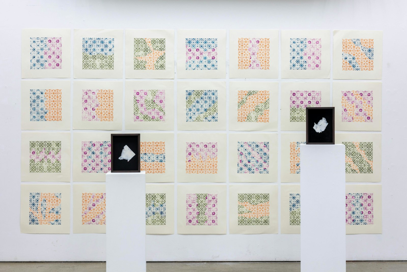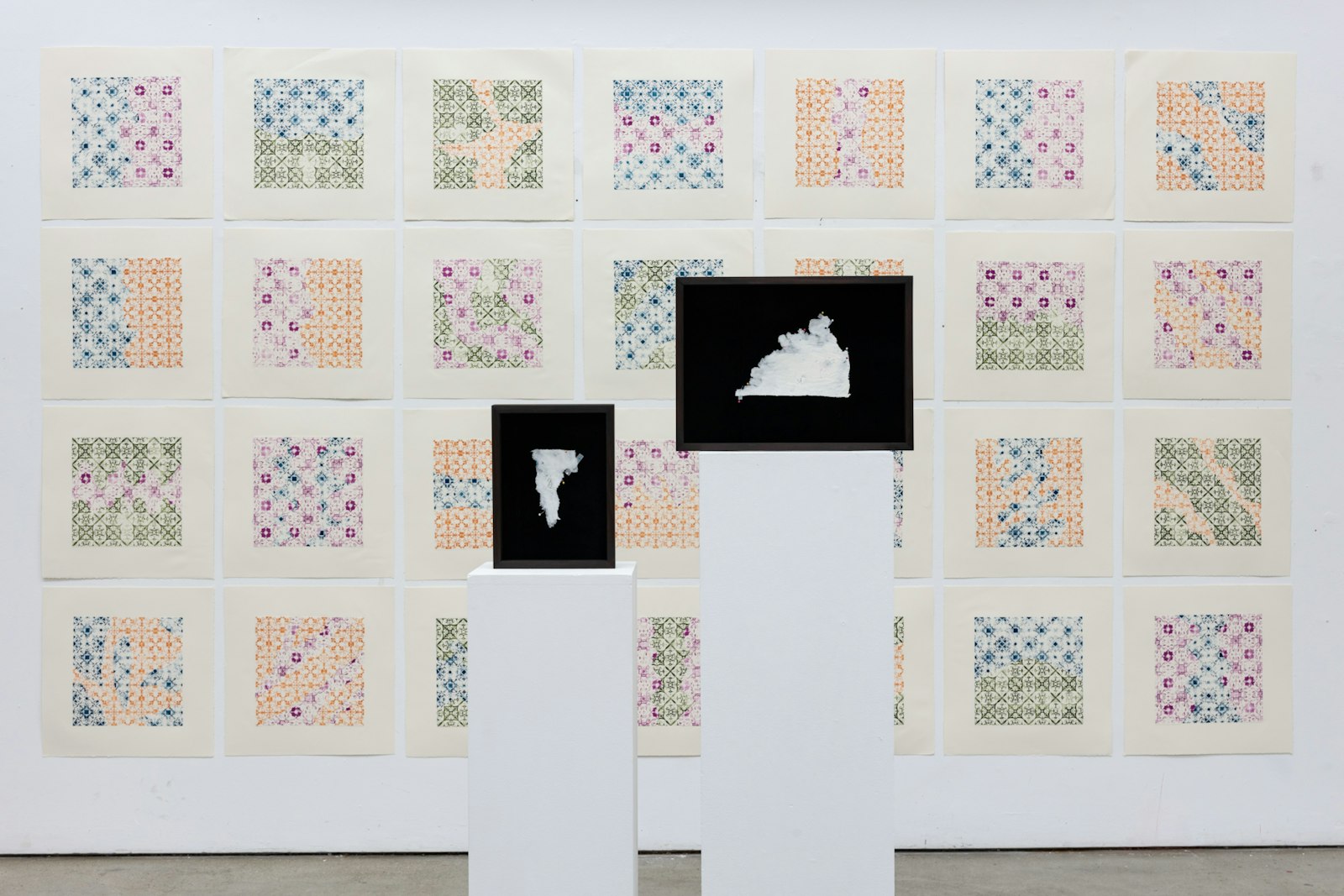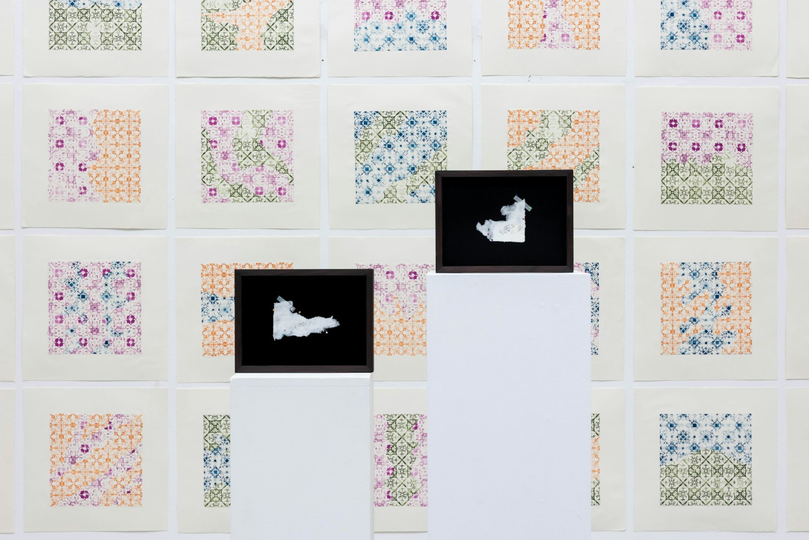 The understanding of the pieces, care, intent and ‘in between,’ comes with the intricate modes of recording, collecting, transformation and translation. The form of grid facilitates the deconstruction of the apartment and maintains the illusion of ease and a real sense of danger. In addition, the medium of paper can activate the complex relationships between memory, history, and care within a place. Through the grid and paper the psychic place of the apartment transforms, its fragments translated into ink and paper finding domicile in the land of language, in which its intimacy can be glanced at between the lines; the site of engagement between my practice, the audience and the apartment.