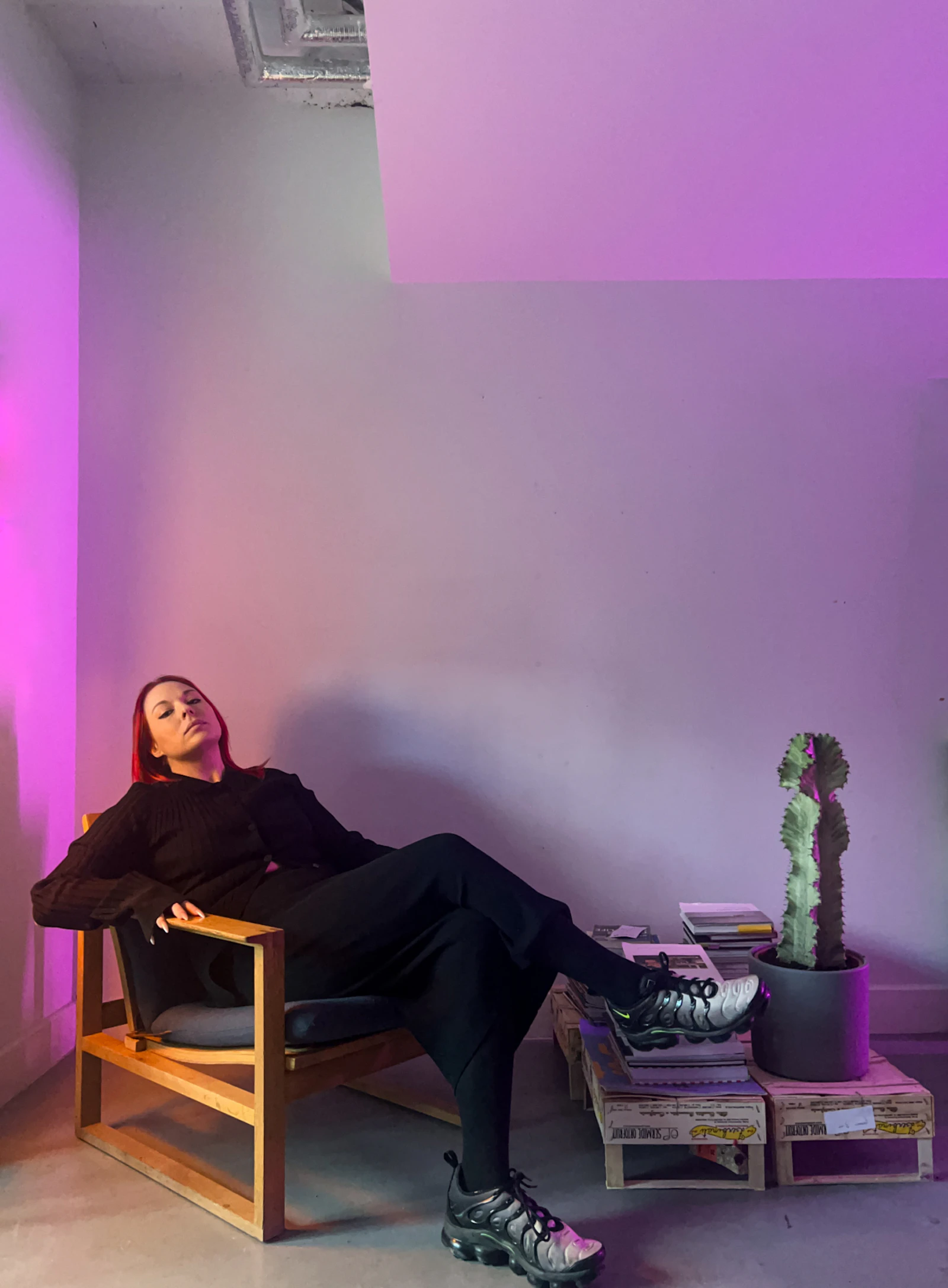 Top: Bob the cactus and I, self-portrait in Josh's studio, February 2023; right: snippets of 'Doomscrolling: Mourning and premenstrual melancholia. Okay. From dusk till dawn: Shitposting your way through the abyss,' Episode 1+2 (2022), ~9 Min