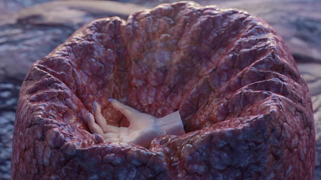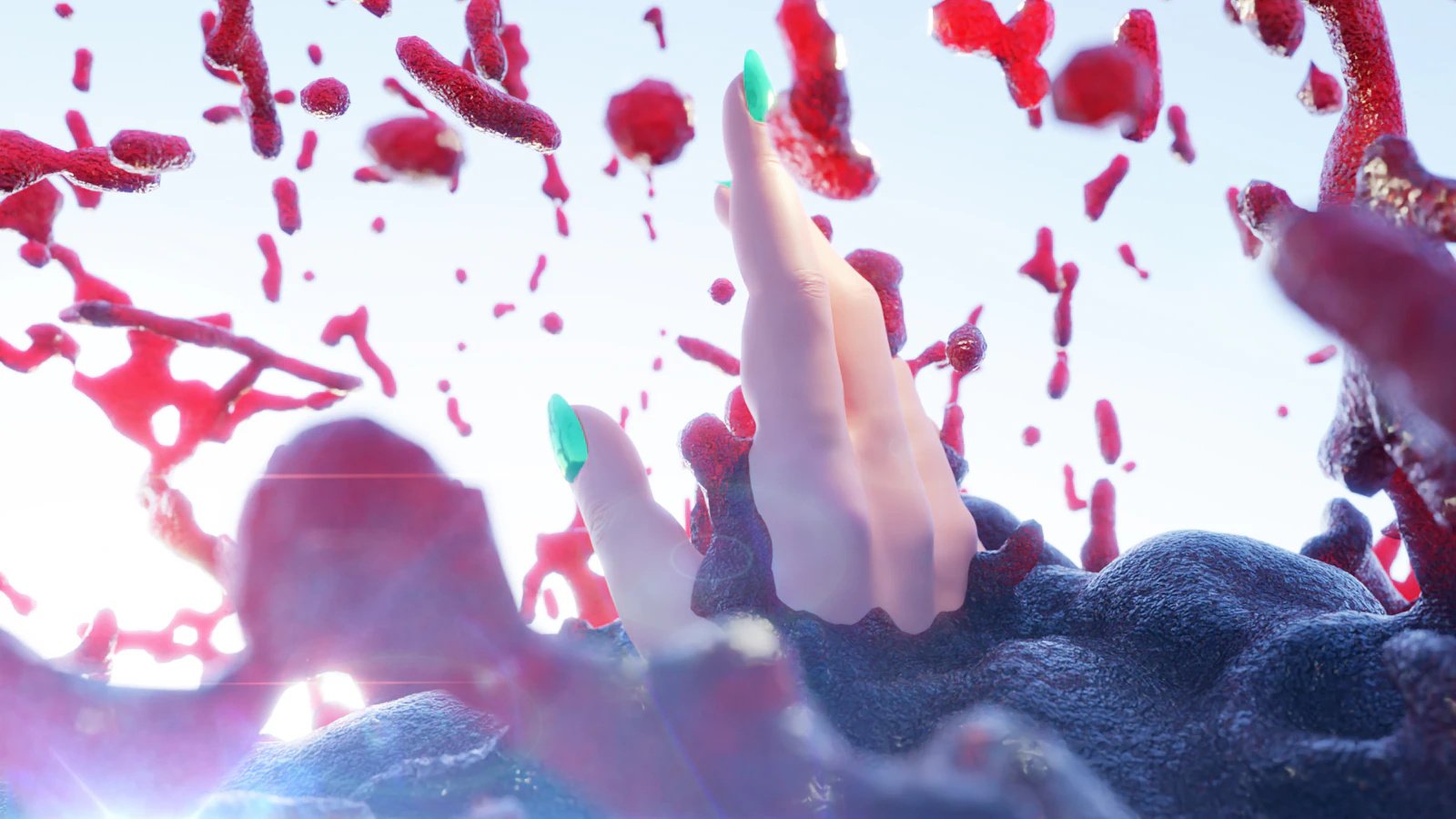 To answer these questions, I use the 3D-imaging software Blender to create digitally rendered animations. These animations feature forms and textures that resonate with the exploration of my own embodiment. Although the work features bold, seductive, and gorey imagery, my body’s main influence on this project moves beyond this ocular indulgence, utilising rhythmic, viscous, textural, and melodic expressions of my fraught embodiment. I bring together new materialism and crip theory to emphasise the “mattering” of being a sick body, promoting the enabling potential of cyberspace beyond capitalist circulation and towards enabling the generative movements of matter. I autotheorize learning to use computational software, and I analyse this shift in practice through the example of making a hyper-realistic rendered hand using computational software. Through this digital hand I question its function as a representational object, arguing that it need not compete with its “original” and can produce meaningful effects beyond its symbolism; a supplementary logic I carry forward to question cyberspace’s relation to the “real world,” and in turn, the disabled body as other to the able. The digital hand simultaneously acts as an aid, giving me the ability to subvert geographical locality and cultivate intimacy from a distance. It allows me to navigate different formats while reaching others at the same time. All this becomes a way to explore mobility and its connection to matter/meaning and the sociopolitics of marginalised bodies.