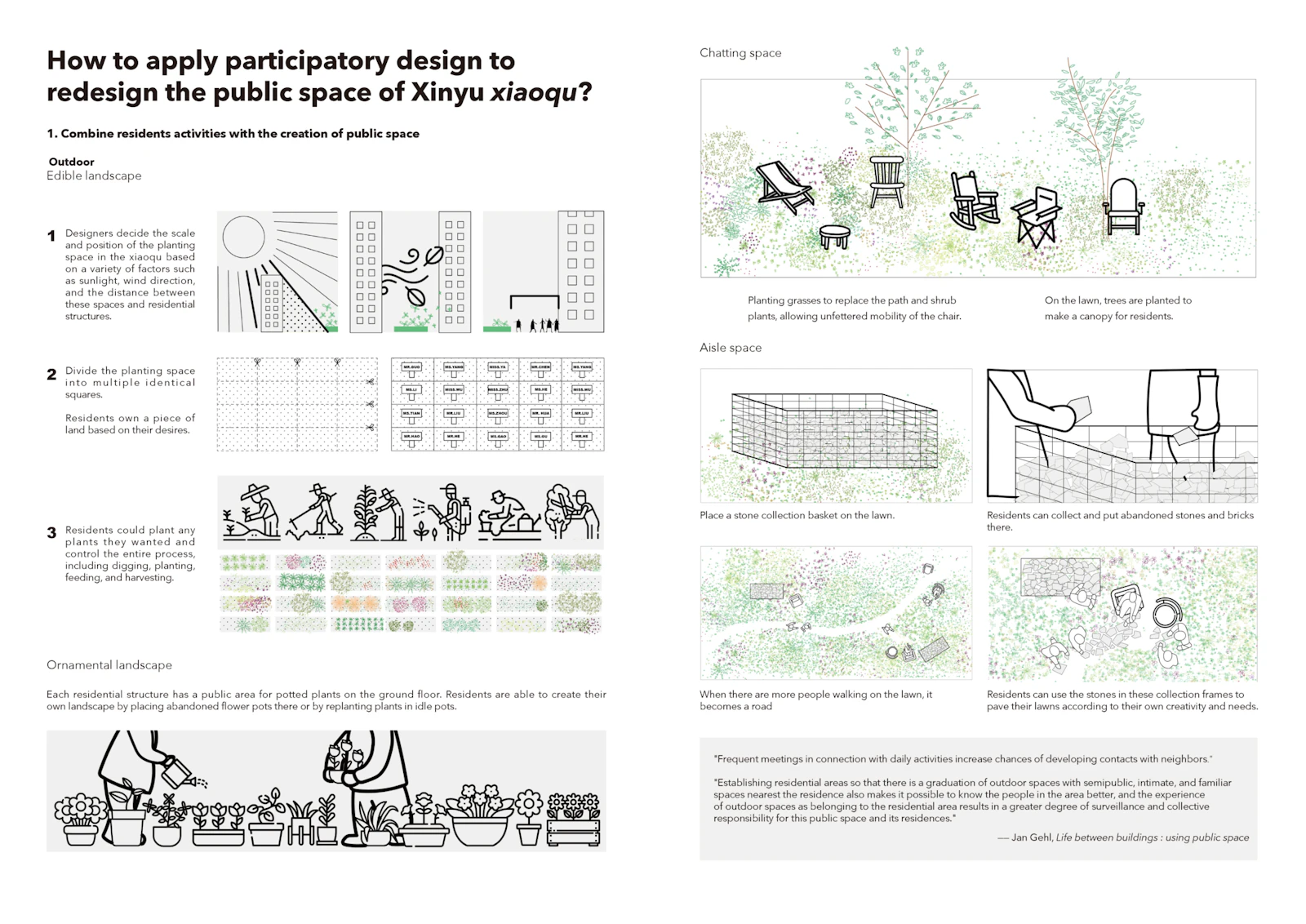 A design guidebook: How to apply participatory design to redesign the public space of Xinyu xiaoqu, drawn by Boya Li, 2023